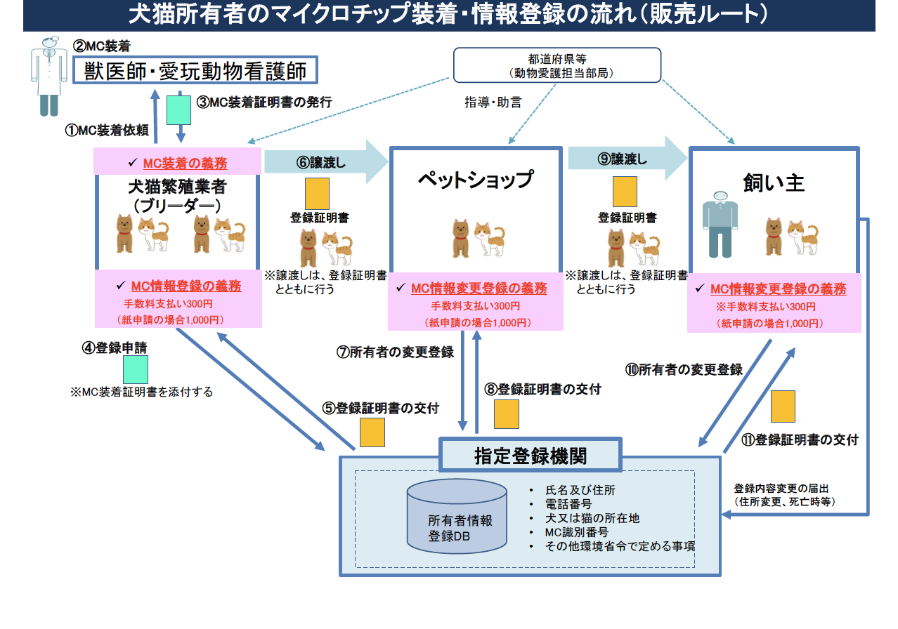 ブリーダーやペットショップ等で購入した犬や猫のマイクロチップ情報登録の流れ