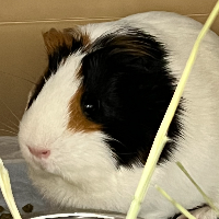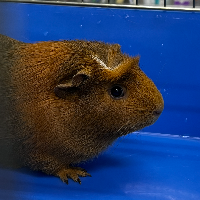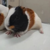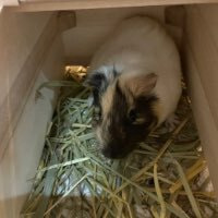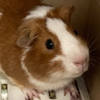 - 性格は、臆病だけれど食いしん坊です。人の気配がするとキューキュー鳴いてご飯をおねだりして、お皿に入れると小屋の中までお皿を引っ張り込みます。